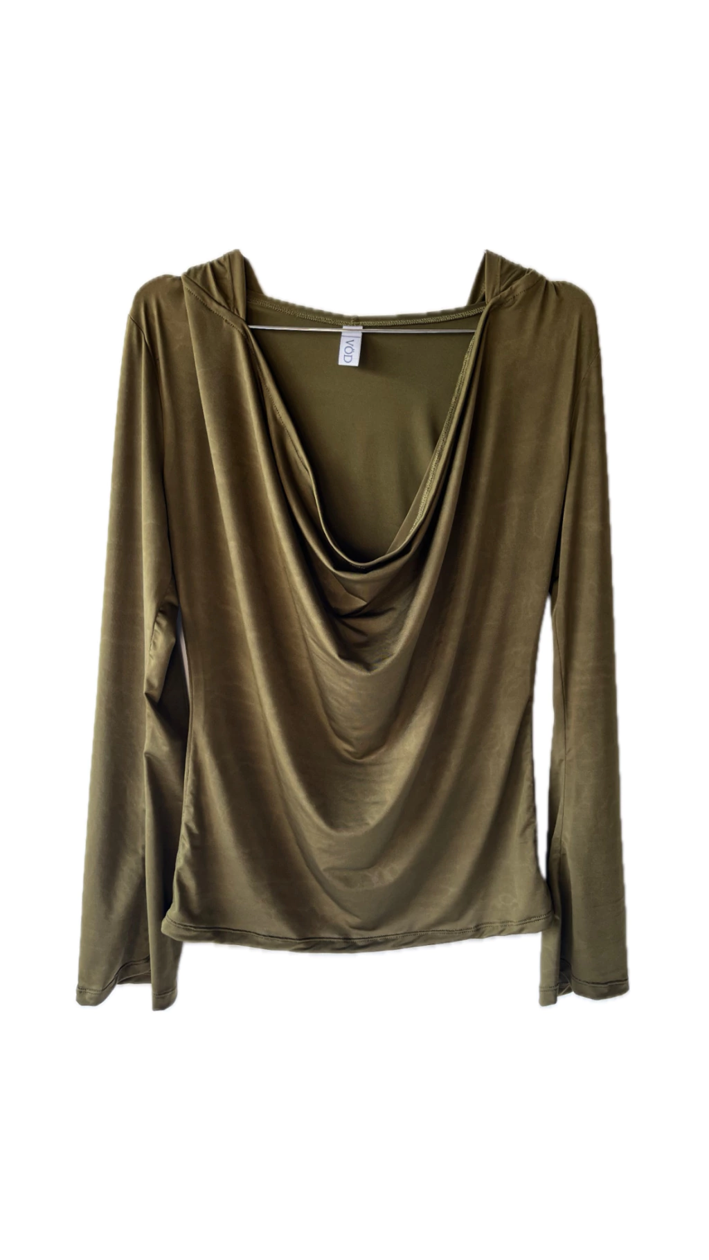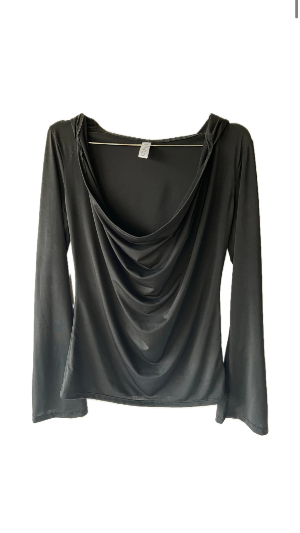 La Remera DISIREÉ un must para tener en tu placard, que te resuelve cualquier outfit, confeccionada en seda fría de calidad que brinda una sensación liviana y suave al tacto. Su tela con spandex permite un ajuste perfecto al cuerpo. Este top de manga larga con escote fruncido y capucha es ideal para lucir elegante y sensual en cualquier ocasión.